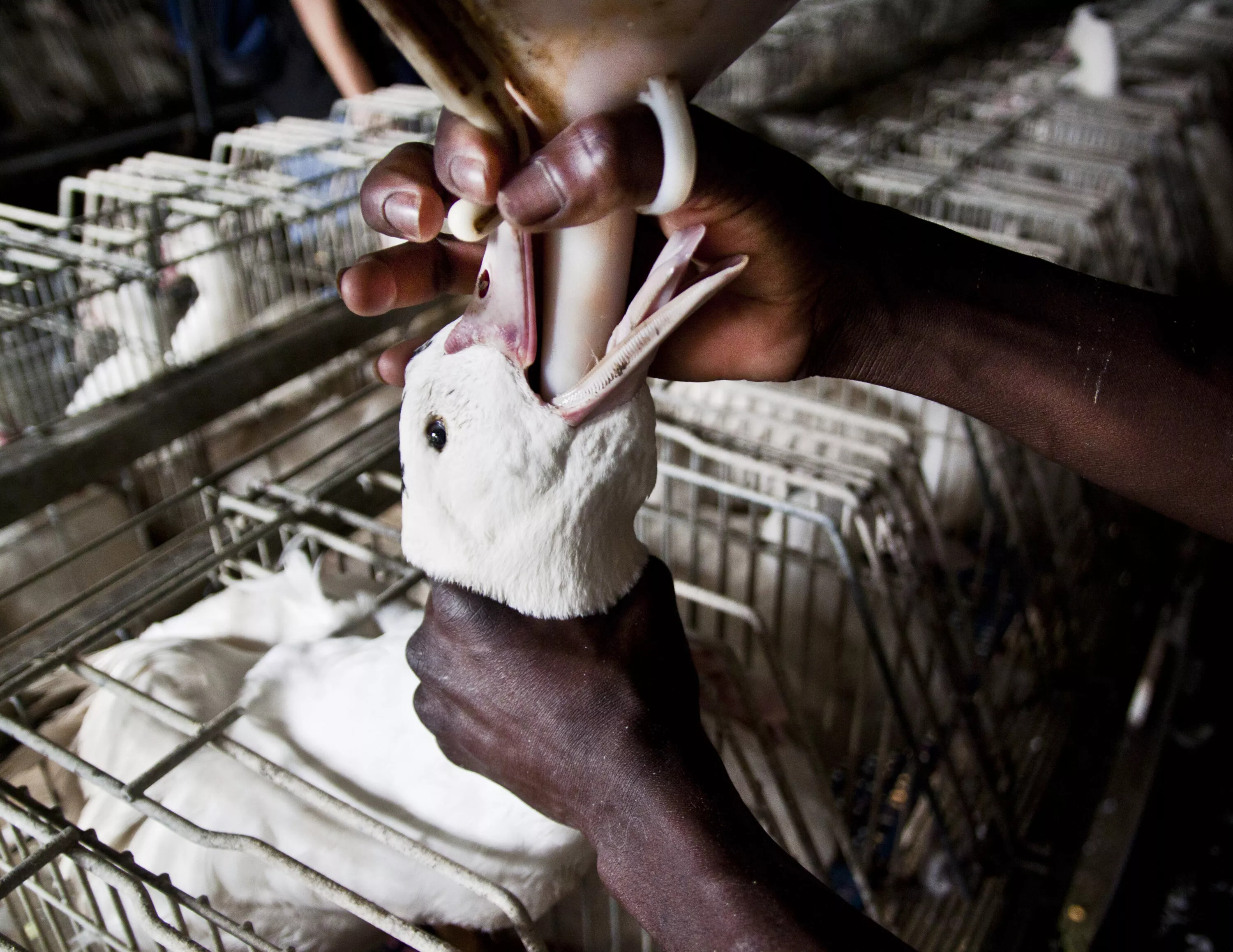 Cada año, un millón de patos y gansos son sometidos a la alimentación forzada para producir foie gras, que se traduce como “hígado graso”. Mediante tubos son forzados a ingerir hasta 2 kilos de pasta de maíz al día; el equivalente a 12 kilos para una persona.